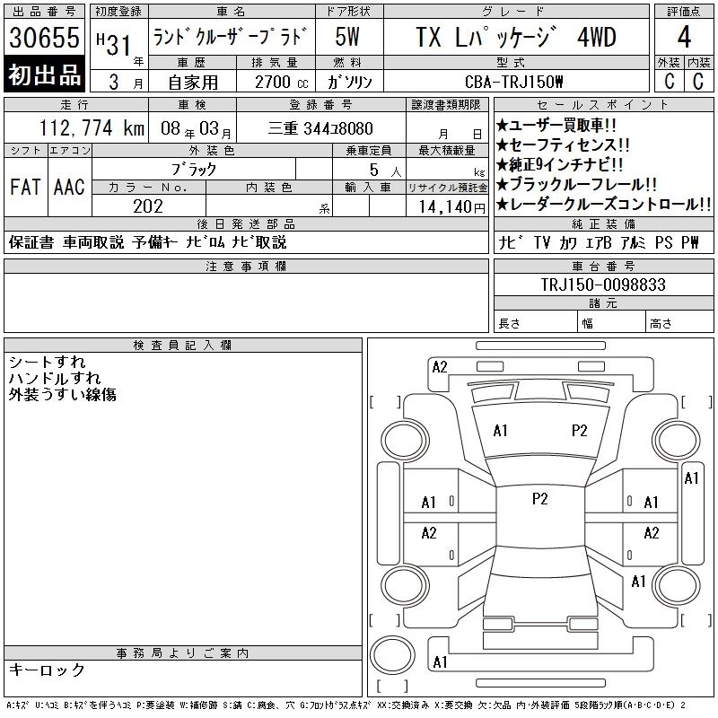 TOYOTA LAND CRUISER PRADO TX L PACKAGE 4WD - лот 30655