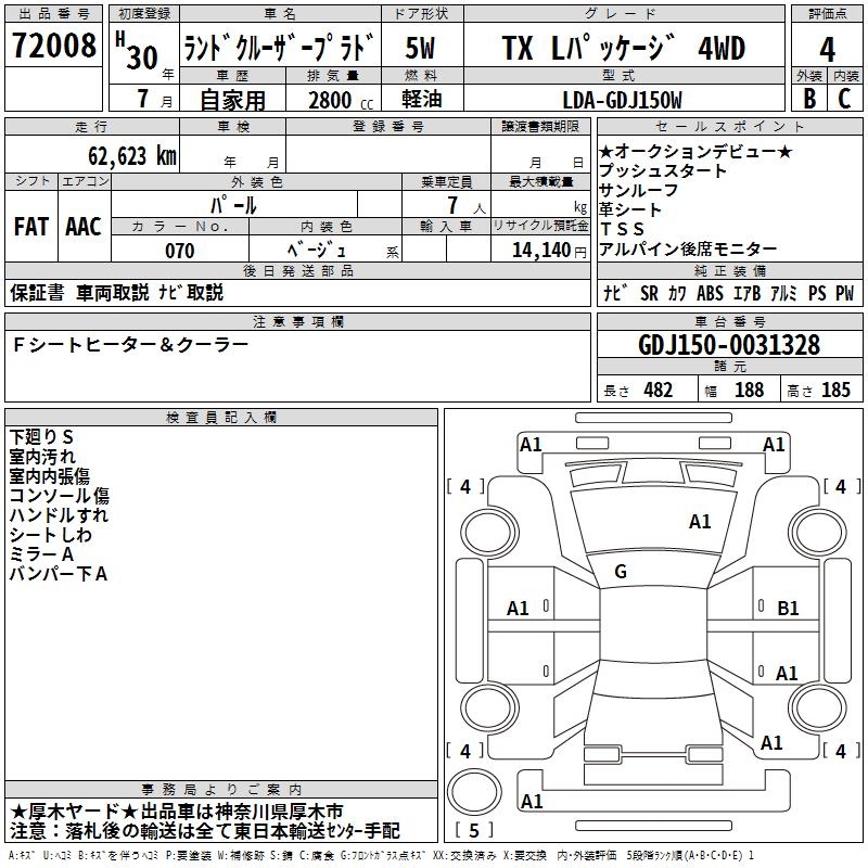TOYOTA LAND CRUISER PRADO TX L PACKAGE 4WD - лот 72008