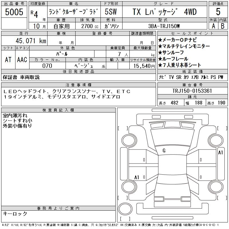 TOYOTA LAND CRUISER PRADO TX L PACKAGE 4WD - лот 5005