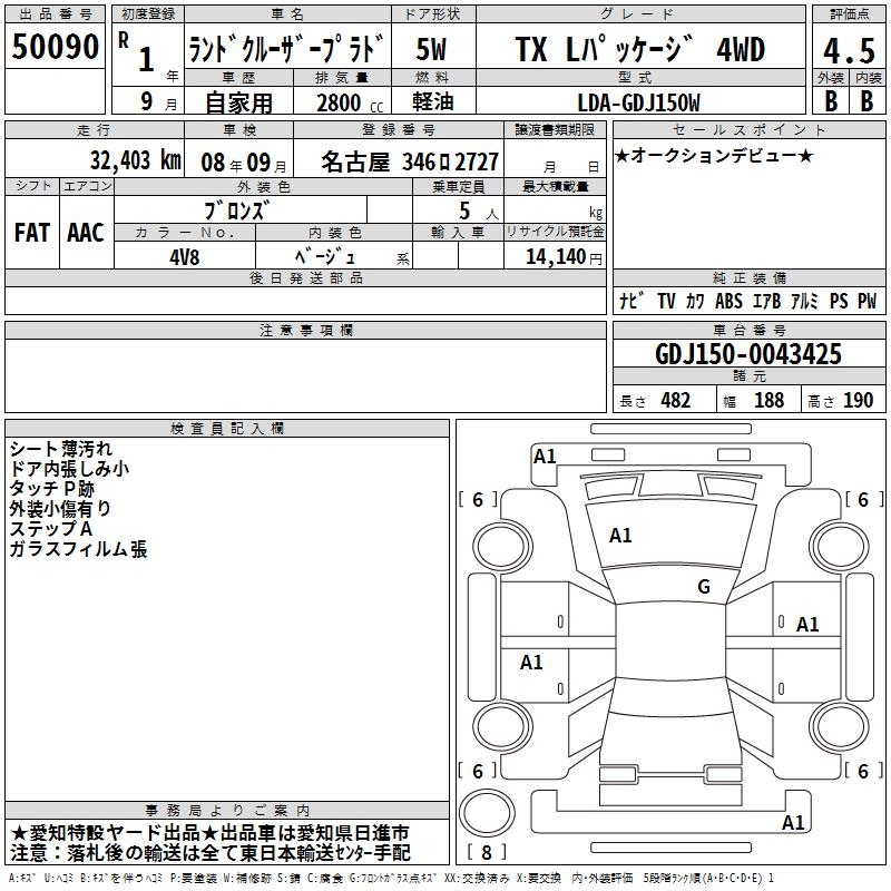 TOYOTA LAND CRUISER PRADO TX L PACKAGE 4WD - лот 50090
