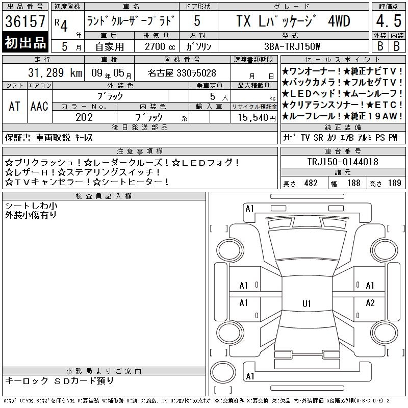 TOYOTA LAND CRUISER PRADO TX L PACKAGE 4WD - лот 36157