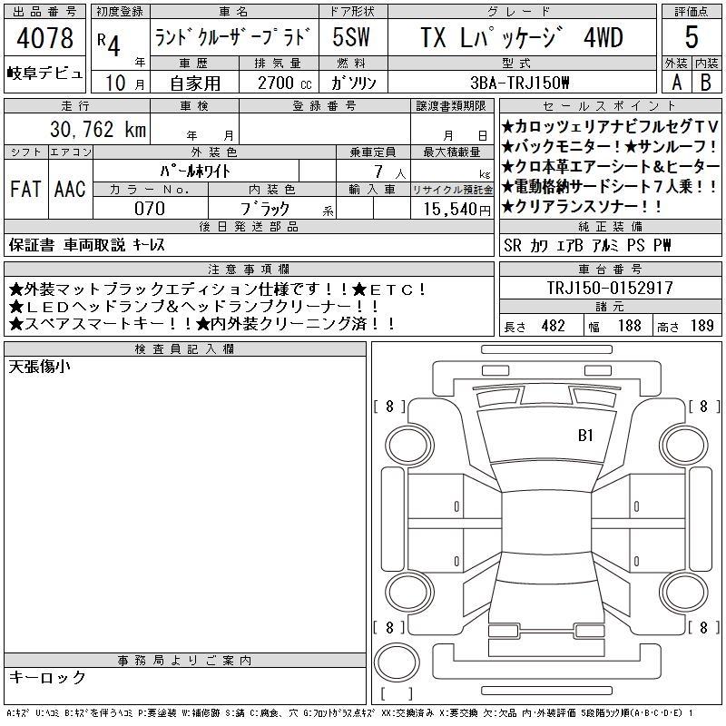 TOYOTA LAND CRUISER PRADO TX L PACKAGE 4WD - лот 4078