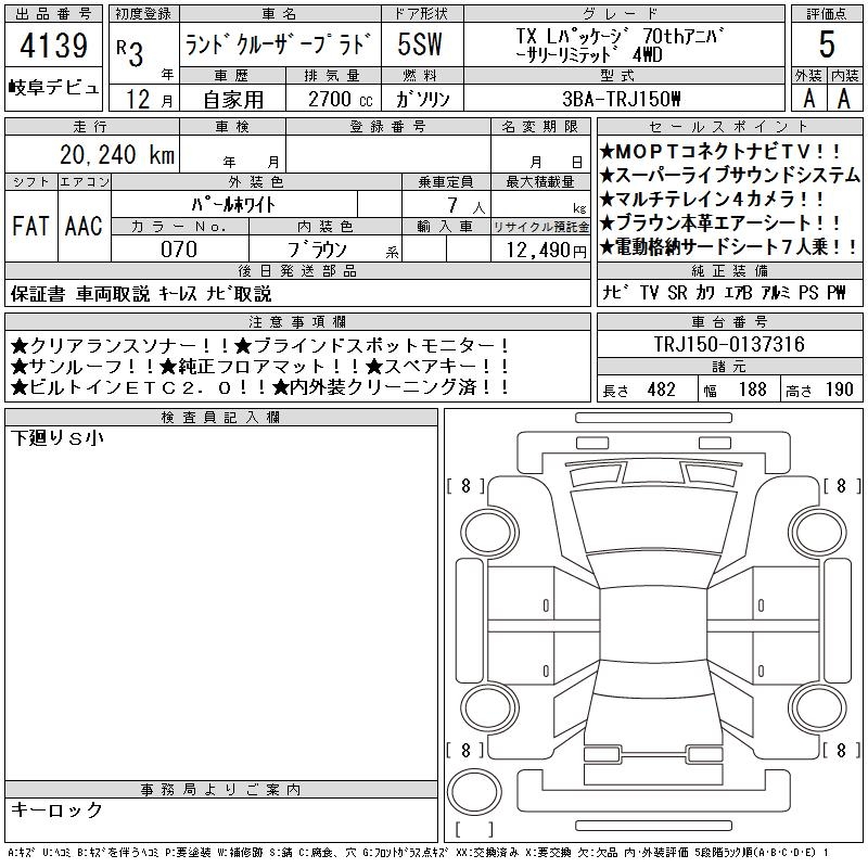 - Кузов: TRJ150W