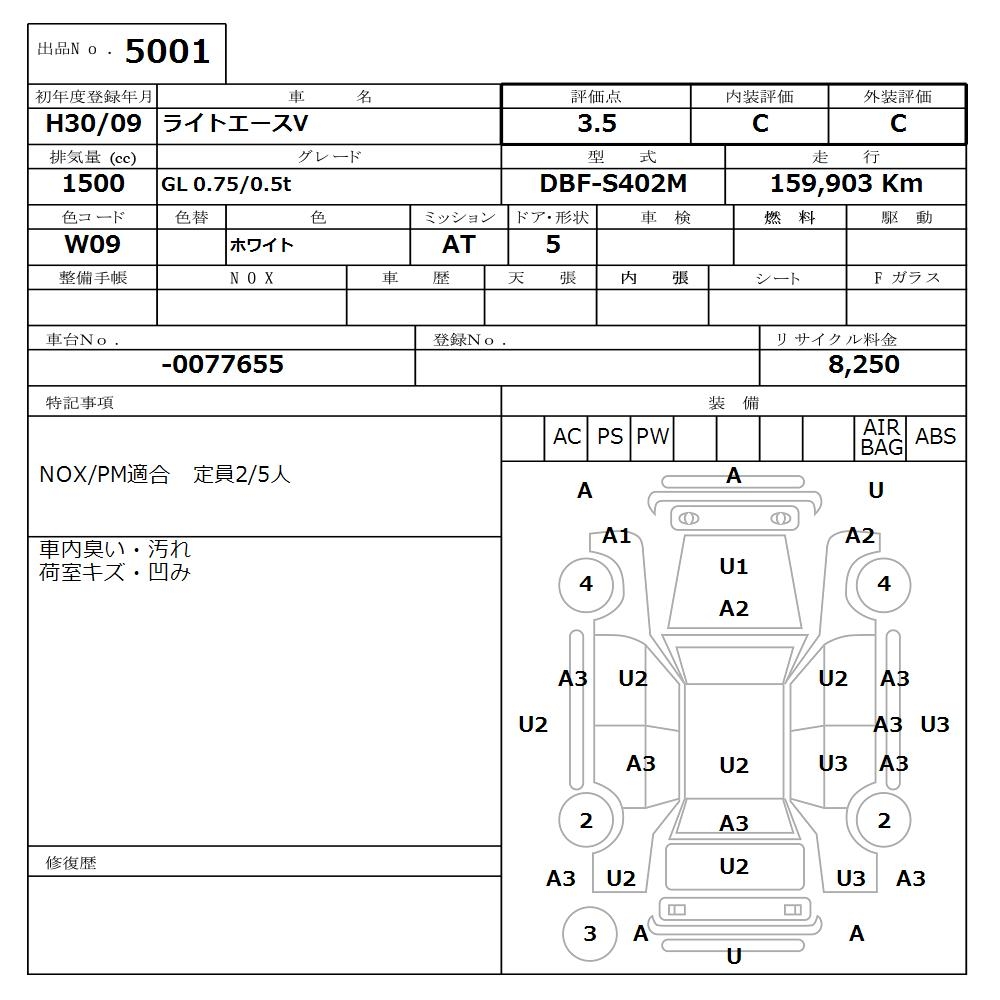 TOYOTA LITE ACE VAN GL 0.75/0.5t - лот 5001