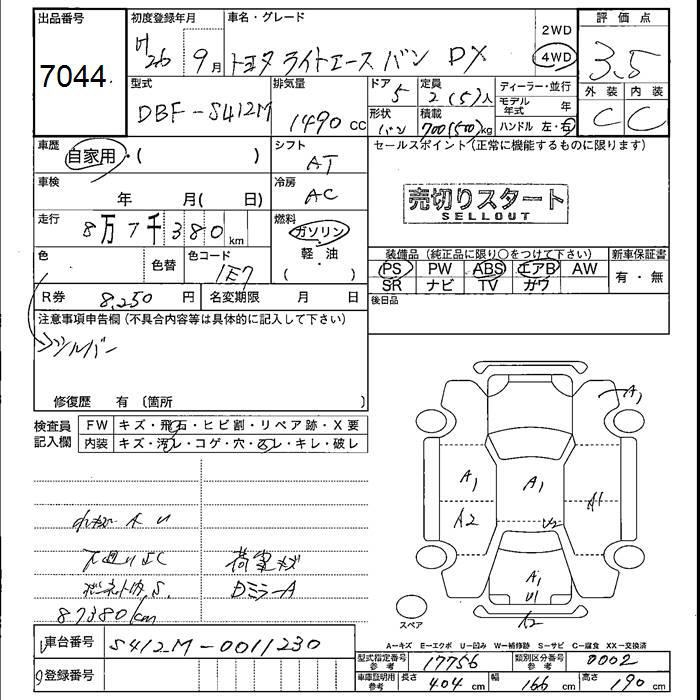 TOYOTA LITE ACE VAN - лот 7044