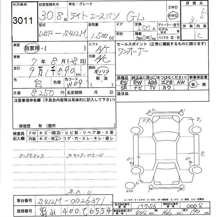 TOYOTA LITE ACE VAN GL 4WD - лот 3011