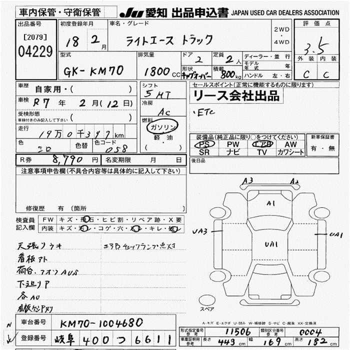 TOYOTA LITE ACE TRUCK - лот 4229