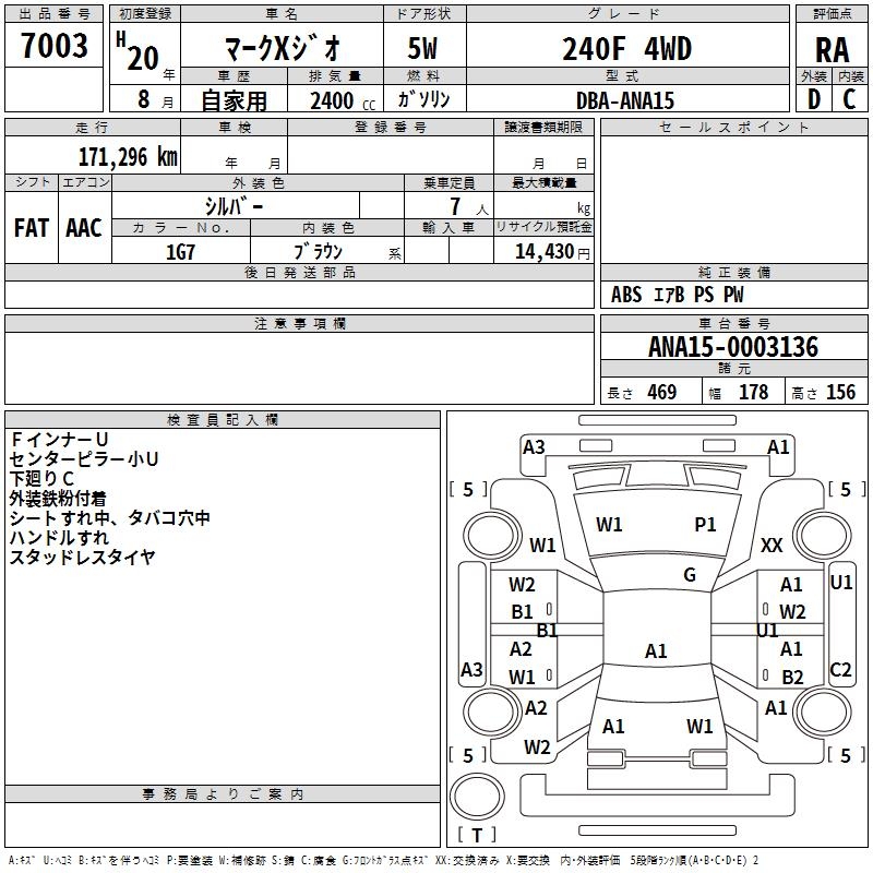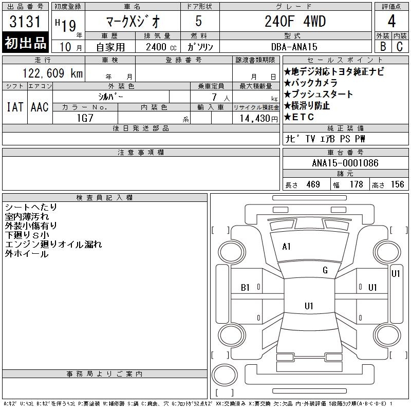 TOYOTA MARK X ZIO - лот 4995
