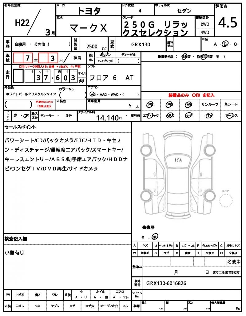 TOYOTA MARK X - лот 46932