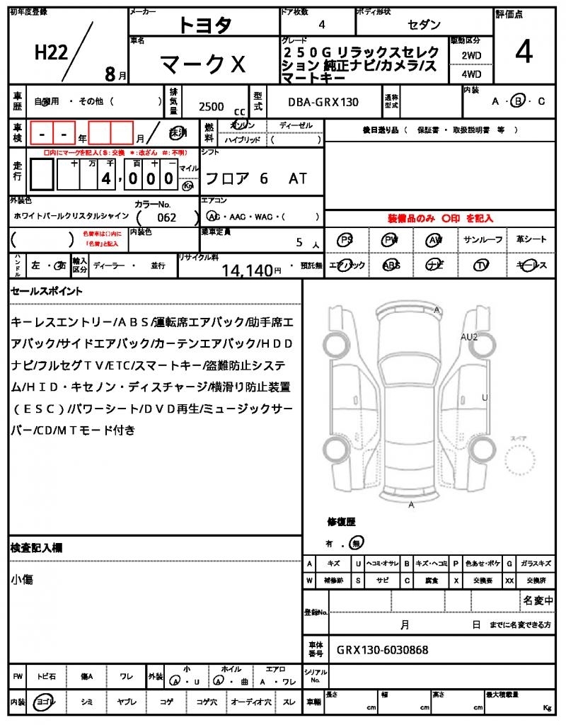 TOYOTA MARK X - лот 46080