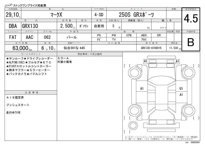 TOYOTA MARK X - лот 8046