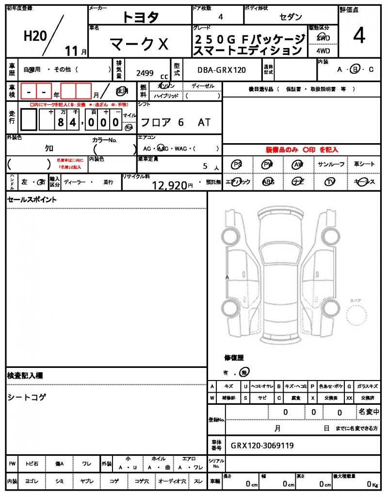 TOYOTA MARK X - лот 53991