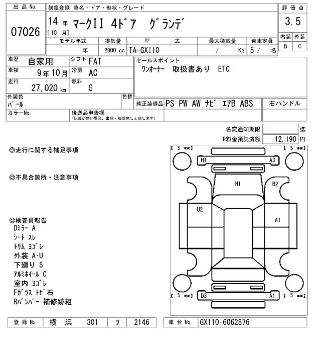 TOYOTA MARK II - лот 7026