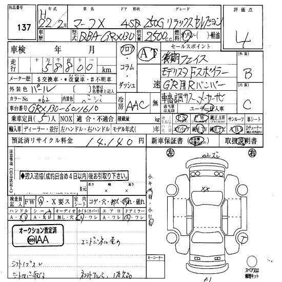 TOYOTA MARK X - лот 80063