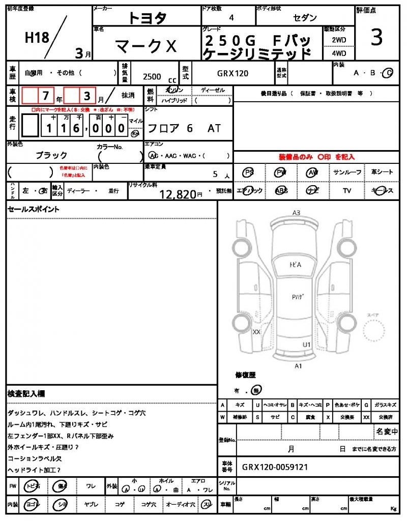 TOYOTA MARK X - лот 10834