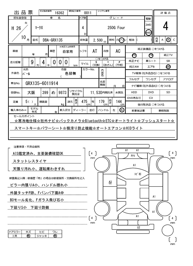TOYOTA MARK X - лот 66450