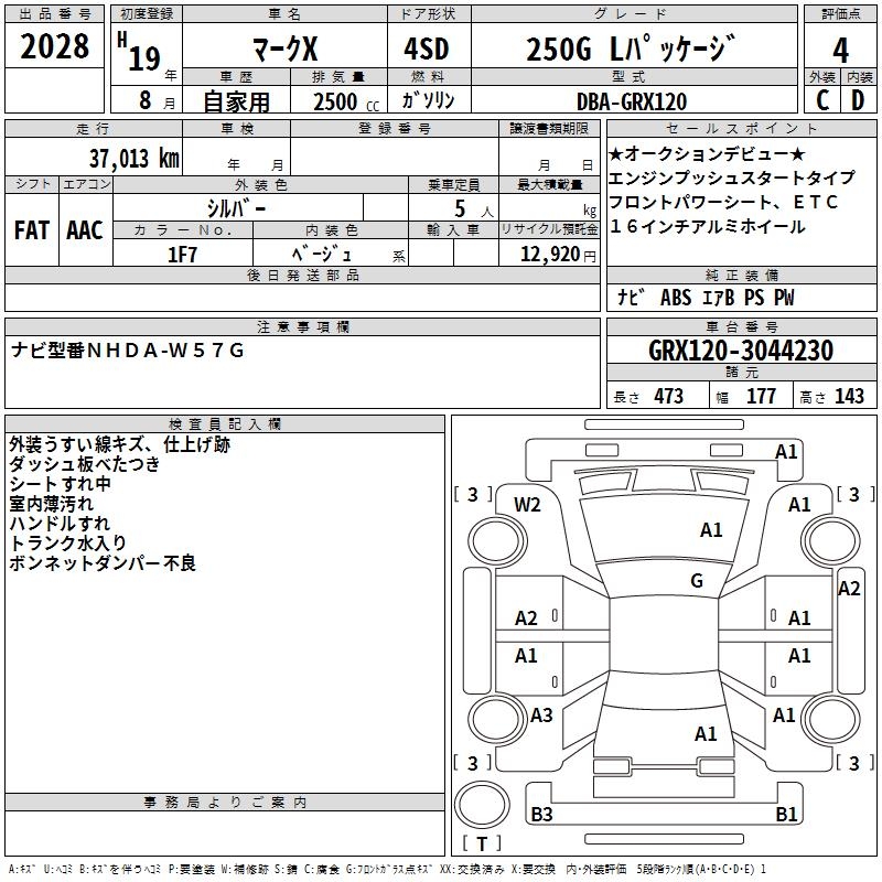 TOYOTA MARK X - лот 2028