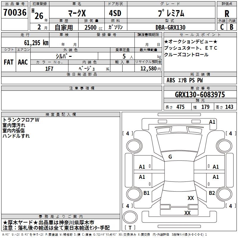 TOYOTA MARK X - лот 70036