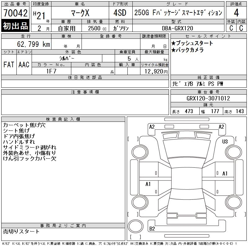 TOYOTA MARK X - лот 70042