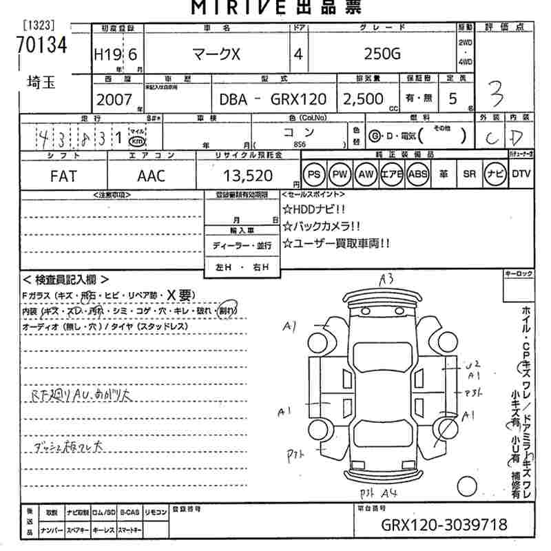 TOYOTA MARK X - лот 70134