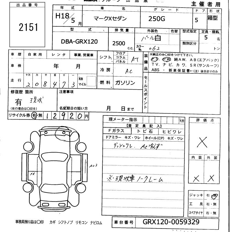 TOYOTA MARK X - лот 2151