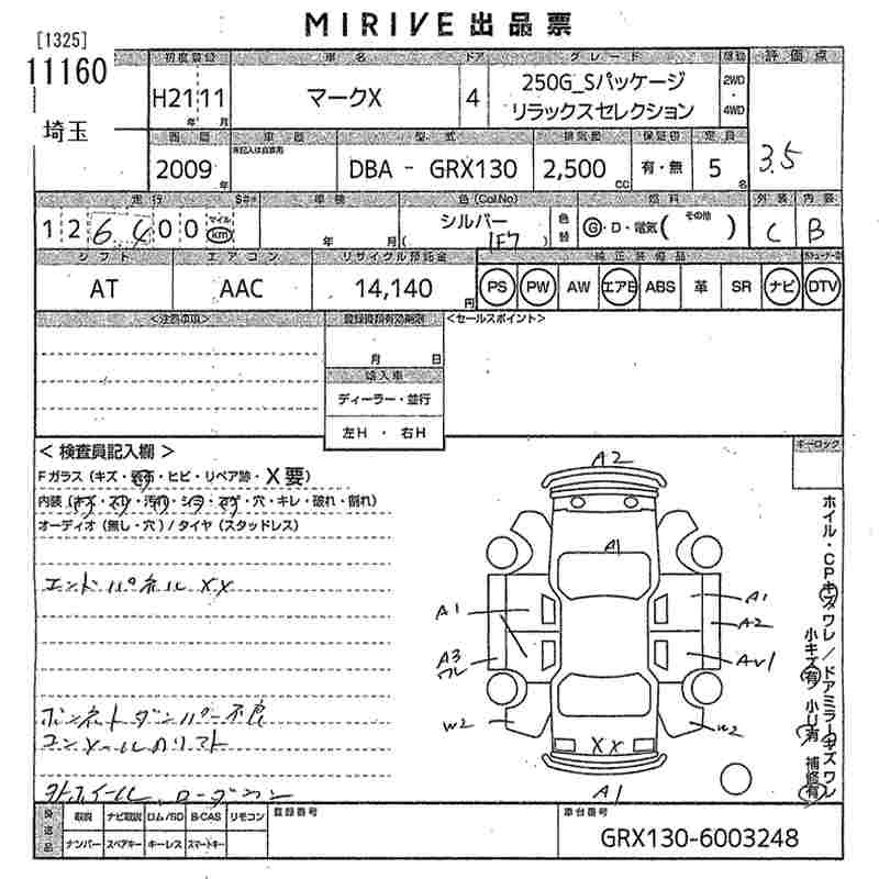 TOYOTA MARK X - лот 11160