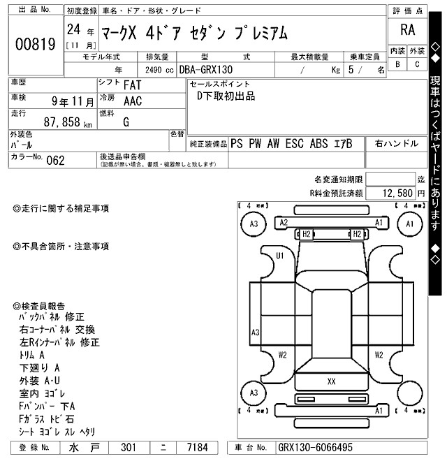 TOYOTA MARK X - лот 819