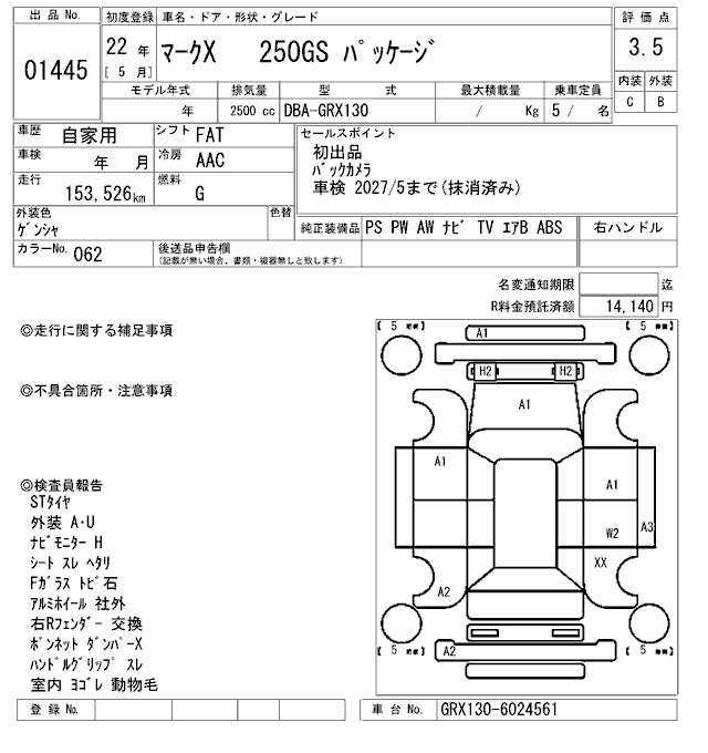 TOYOTA MARK X - лот 1445