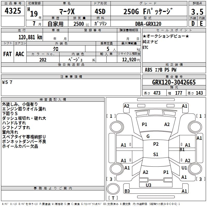 TOYOTA MARK X - лот 4325