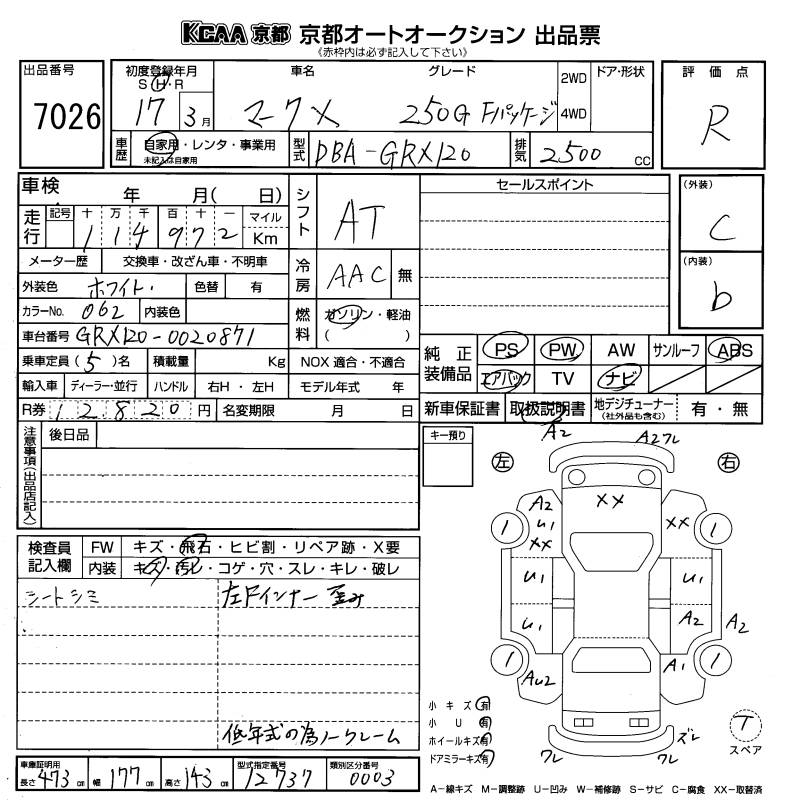 TOYOTA MARK X - лот 7026