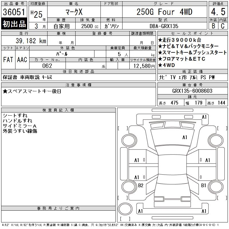 TOYOTA MARK X - лот 36051