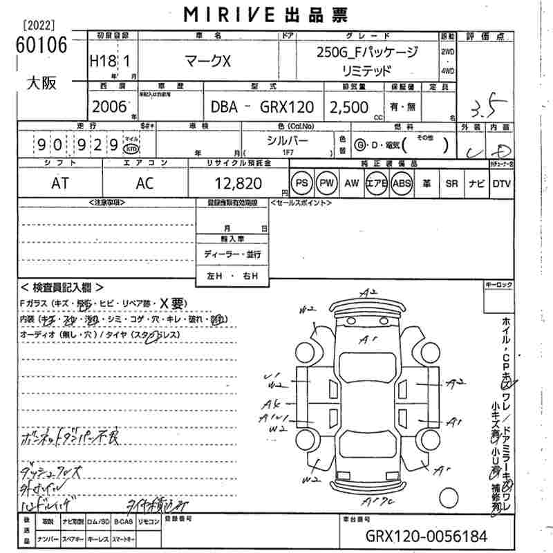 TOYOTA MARK X - лот 60106