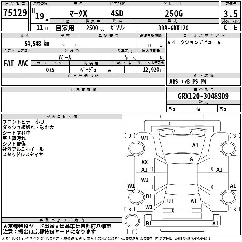 TOYOTA MARK X - лот 75129