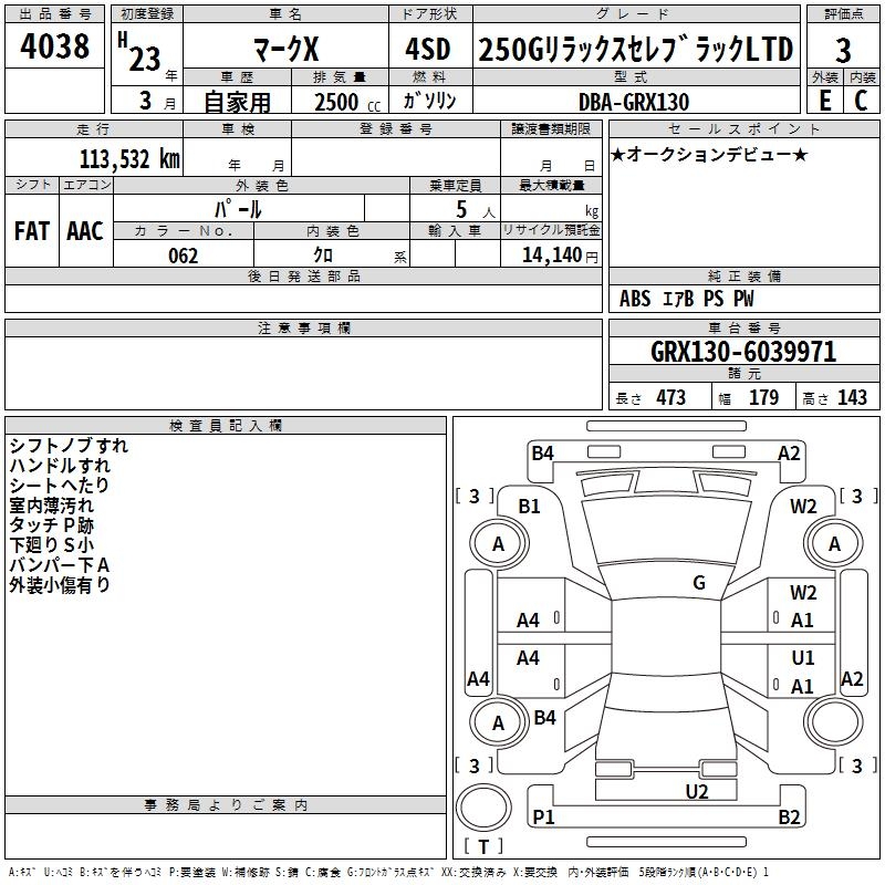 TOYOTA MARK X - лот 4038
