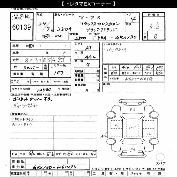 TOYOTA MARK X - лот 60139