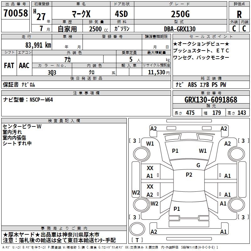 TOYOTA MARK X - лот 70058