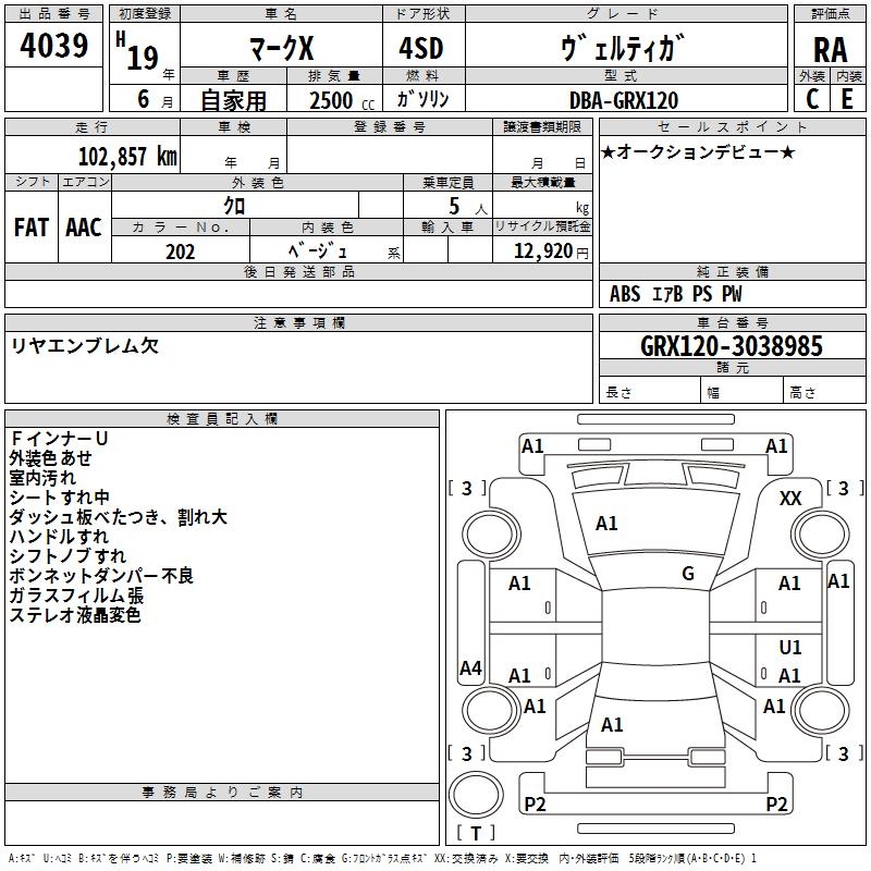 TOYOTA MARK X - лот 4039