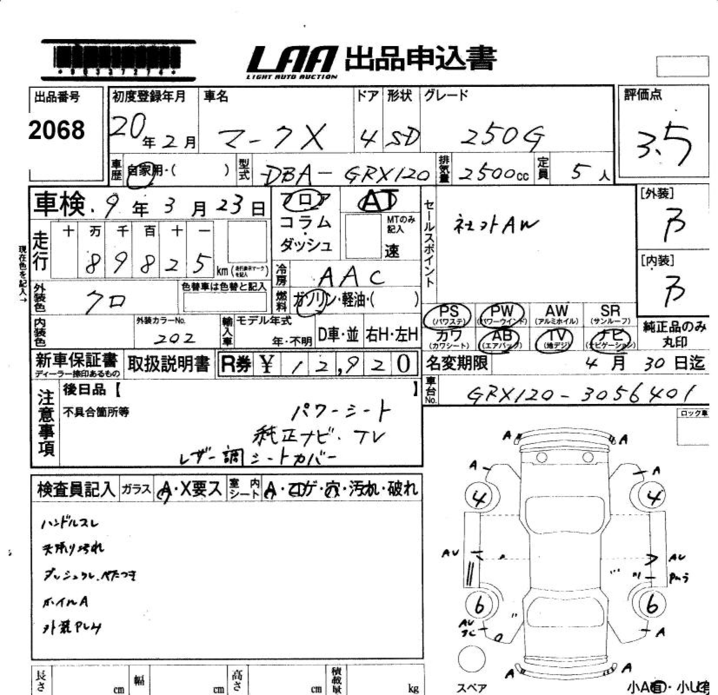 TOYOTA MARK X - лот 2068