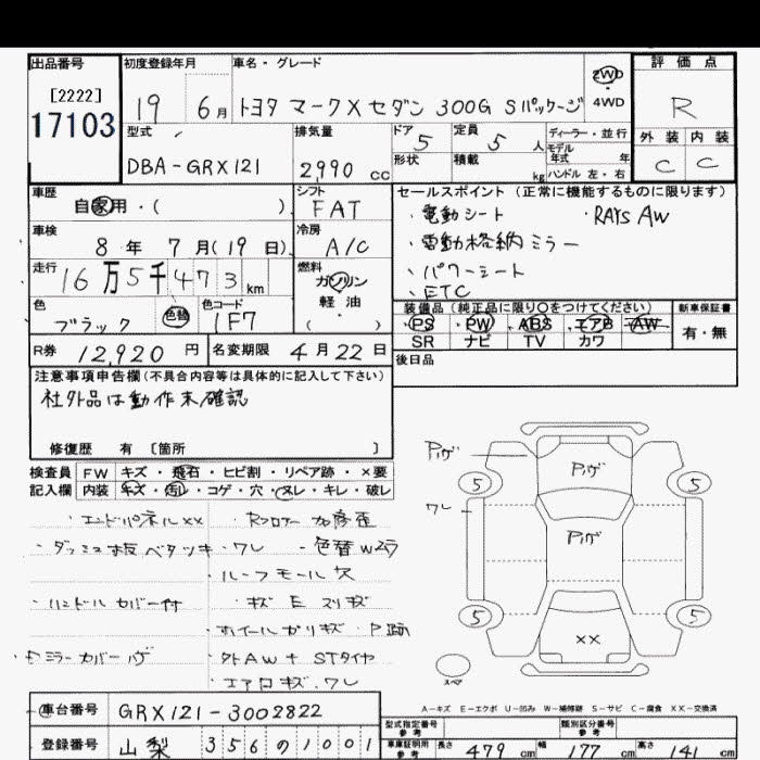 TOYOTA MARK X - лот 17103