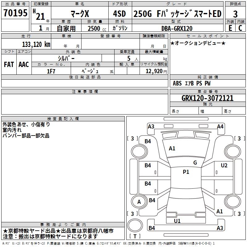 TOYOTA MARK X - лот 70195