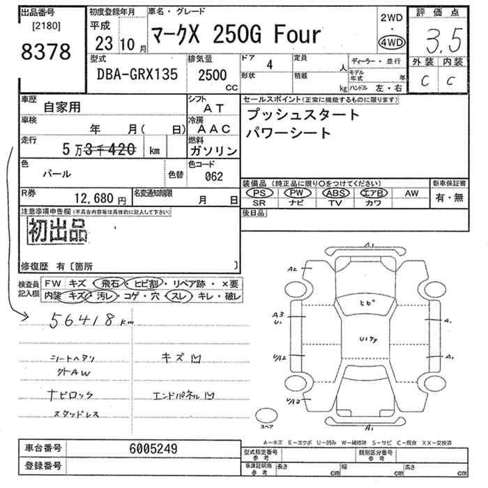 TOYOTA MARK X - лот 8378