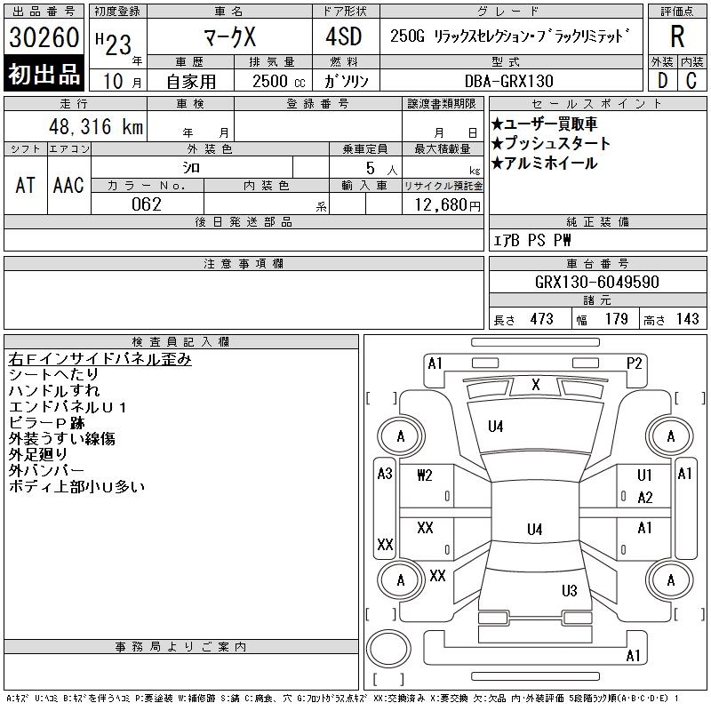 TOYOTA MARK X - лот 30260
