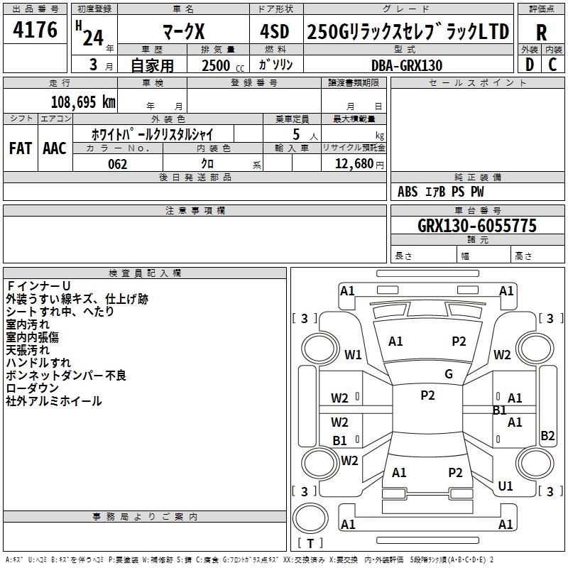 TOYOTA MARK X - лот 4176