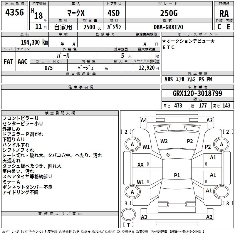 TOYOTA MARK X - лот 4356