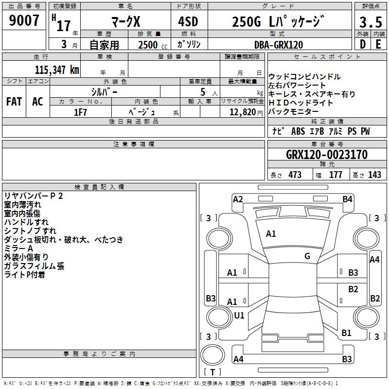 TOYOTA MARK X - лот 9007