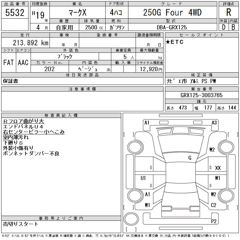 TOYOTA MARK X - лот 5532