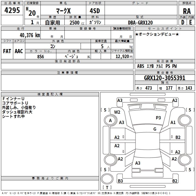 TOYOTA MARK X - лот 4295