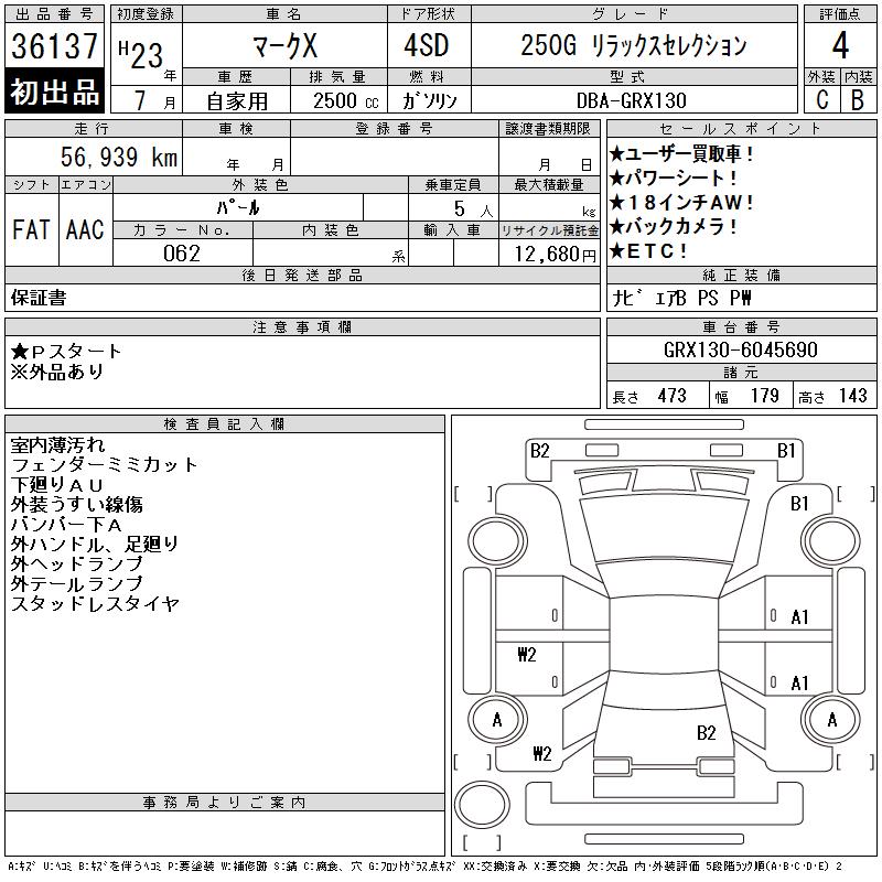 TOYOTA MARK X - лот 36137