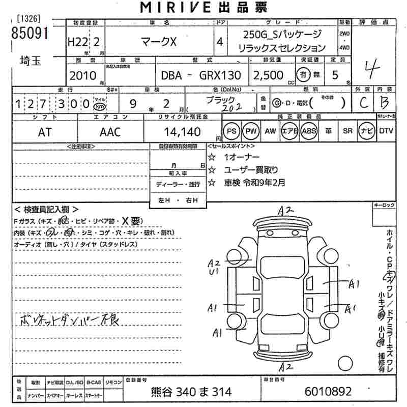 TOYOTA MARK X - лот 85091