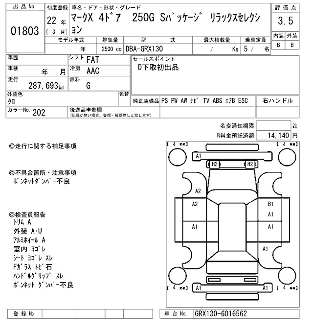 TOYOTA MARK X - лот 1803